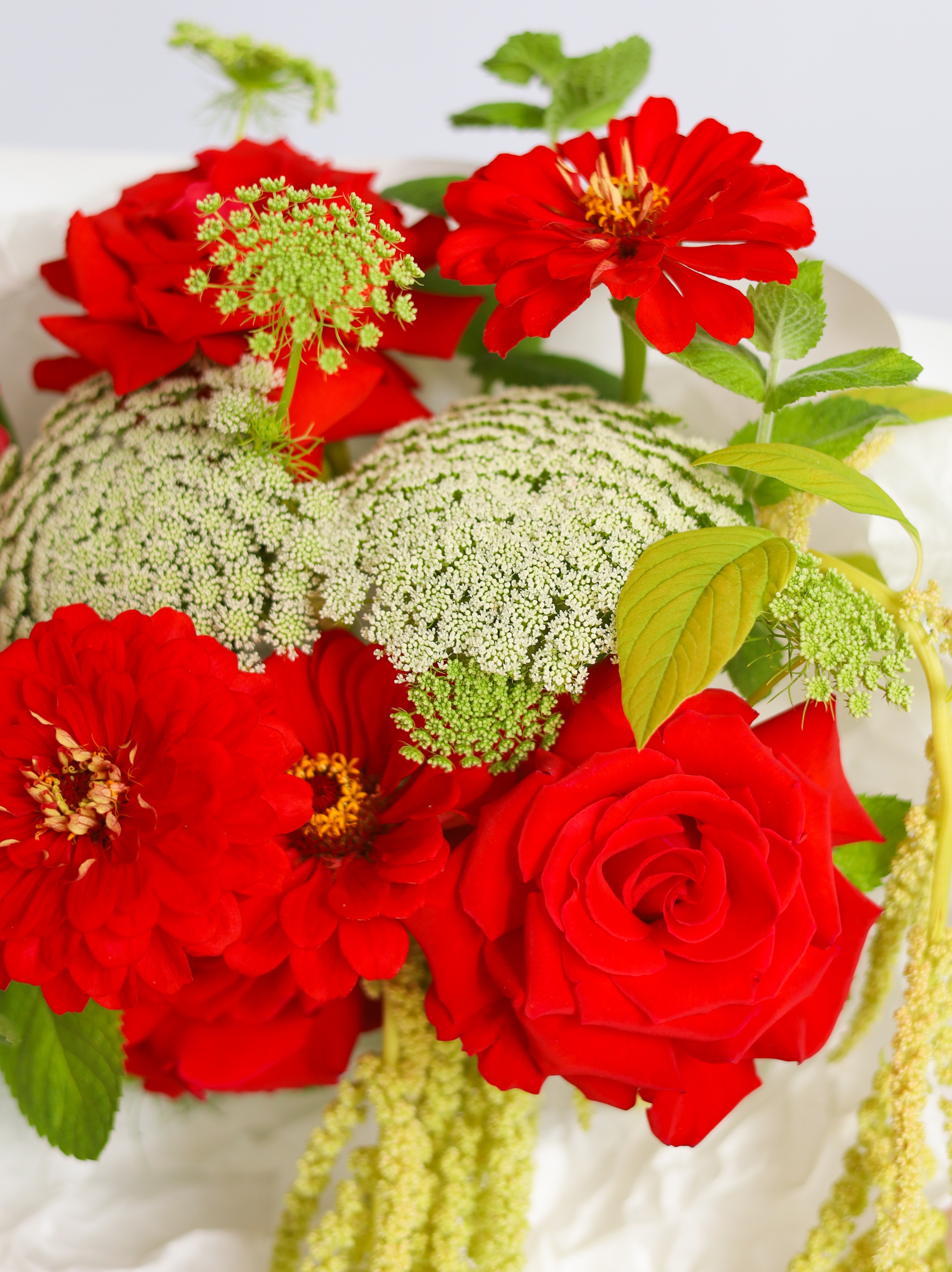 —БУКЕТ С АЛОЙ ФРАНЦУЗСКОЙ РОЗОЙ И АМАРАНТОМ