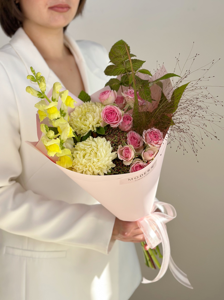 ЯРКИЙ БУКЕТ С КУСТОВОЙ РОЗОЙ