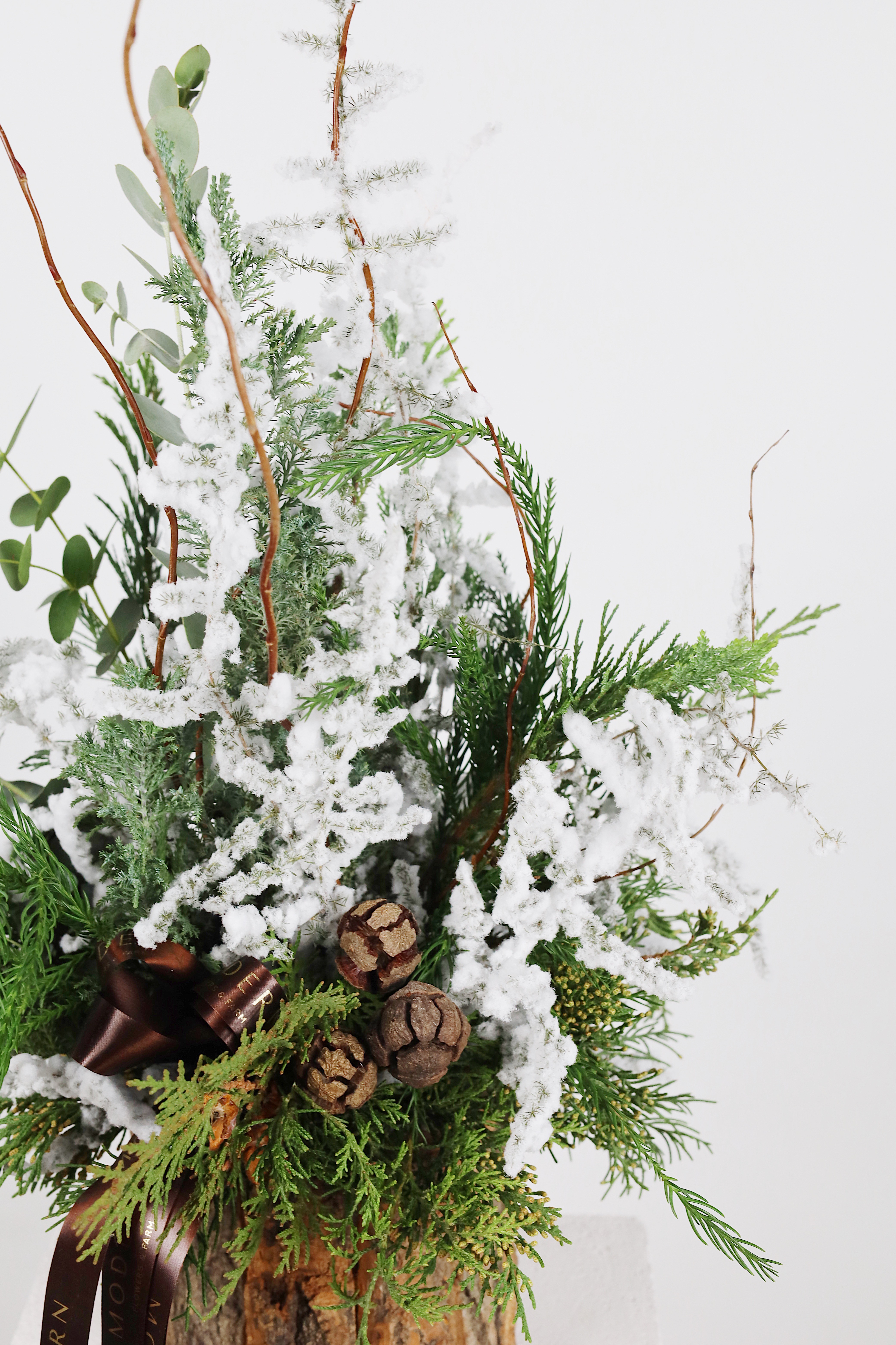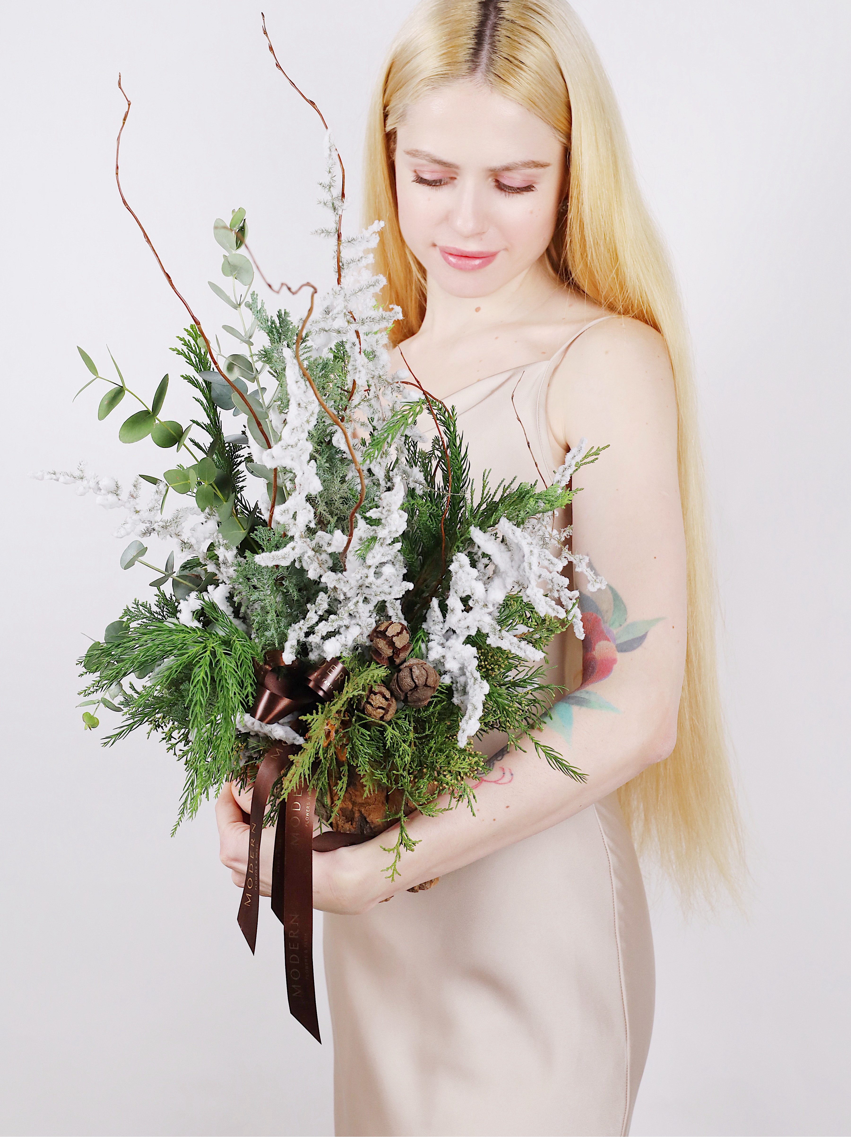 —ХВОЙНАЯ КОМПОЗИЦИЯ В ДЕРЕВЯННОМ КАШПО