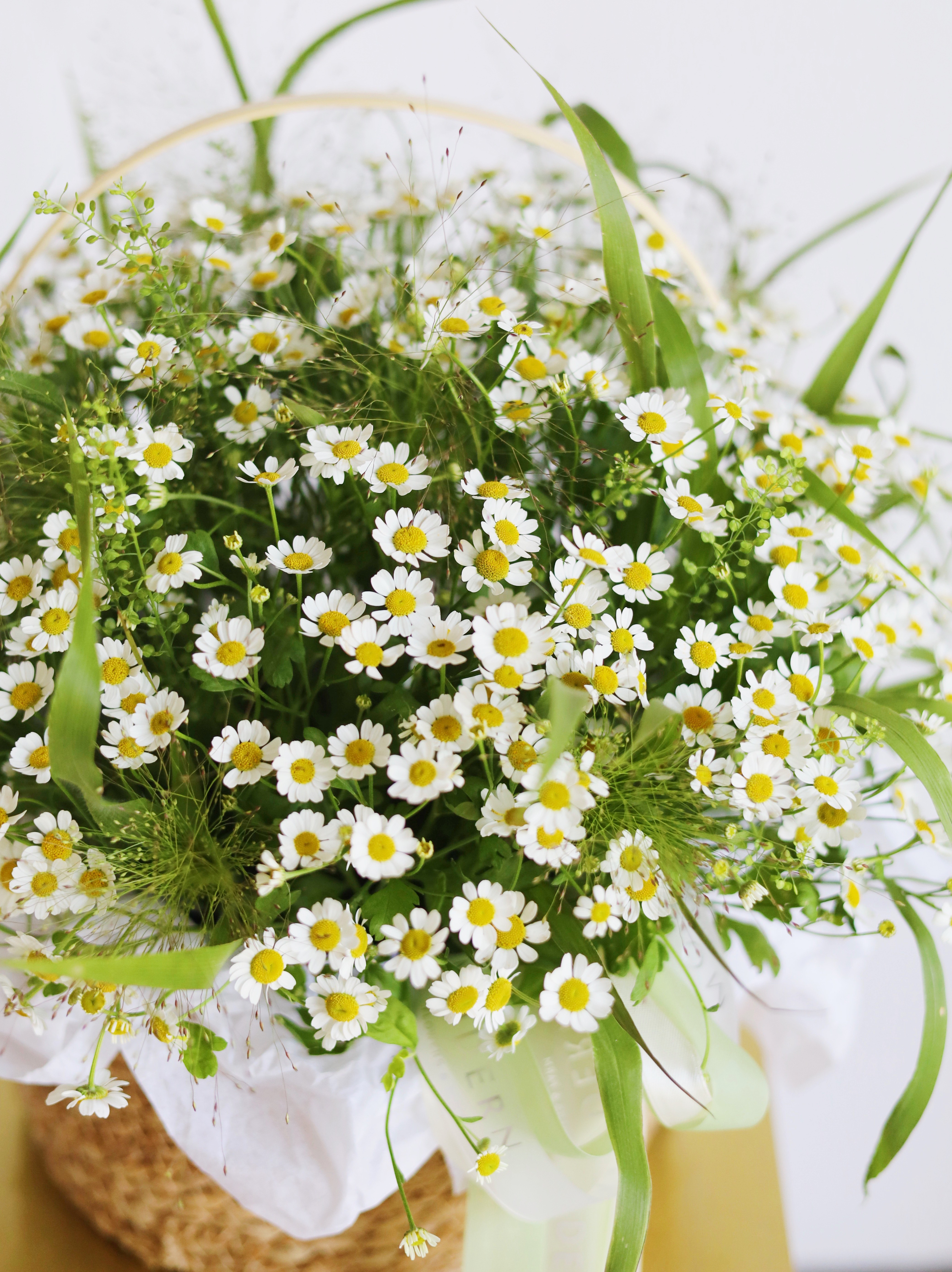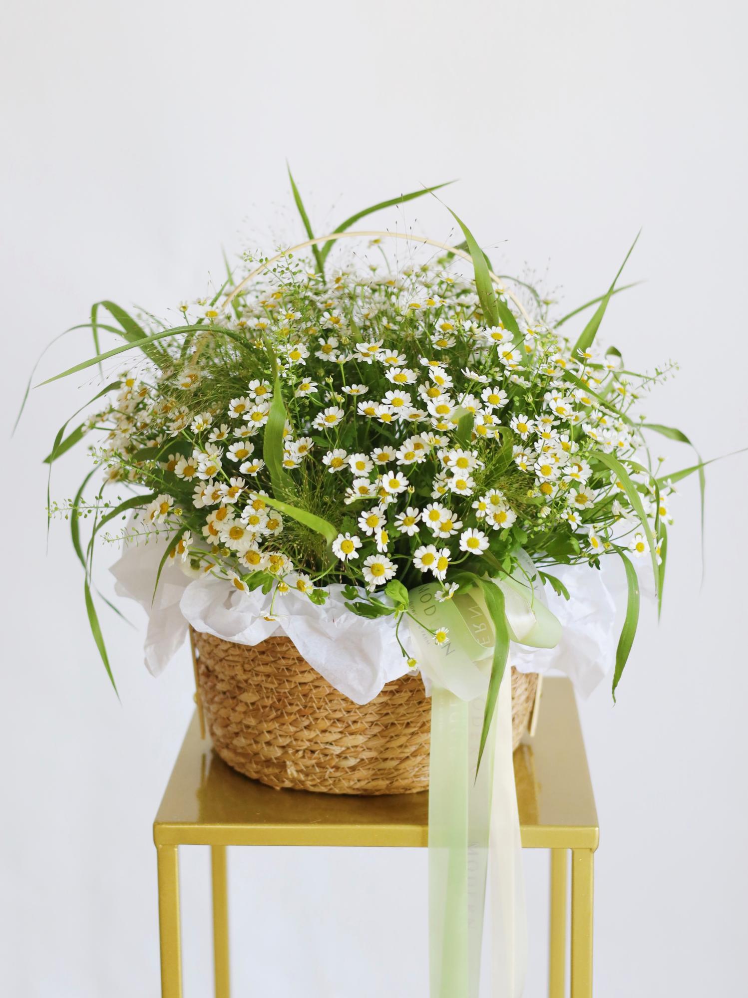 Изящная корзина с ромашками и злаками: природная красота в каждом элементе
