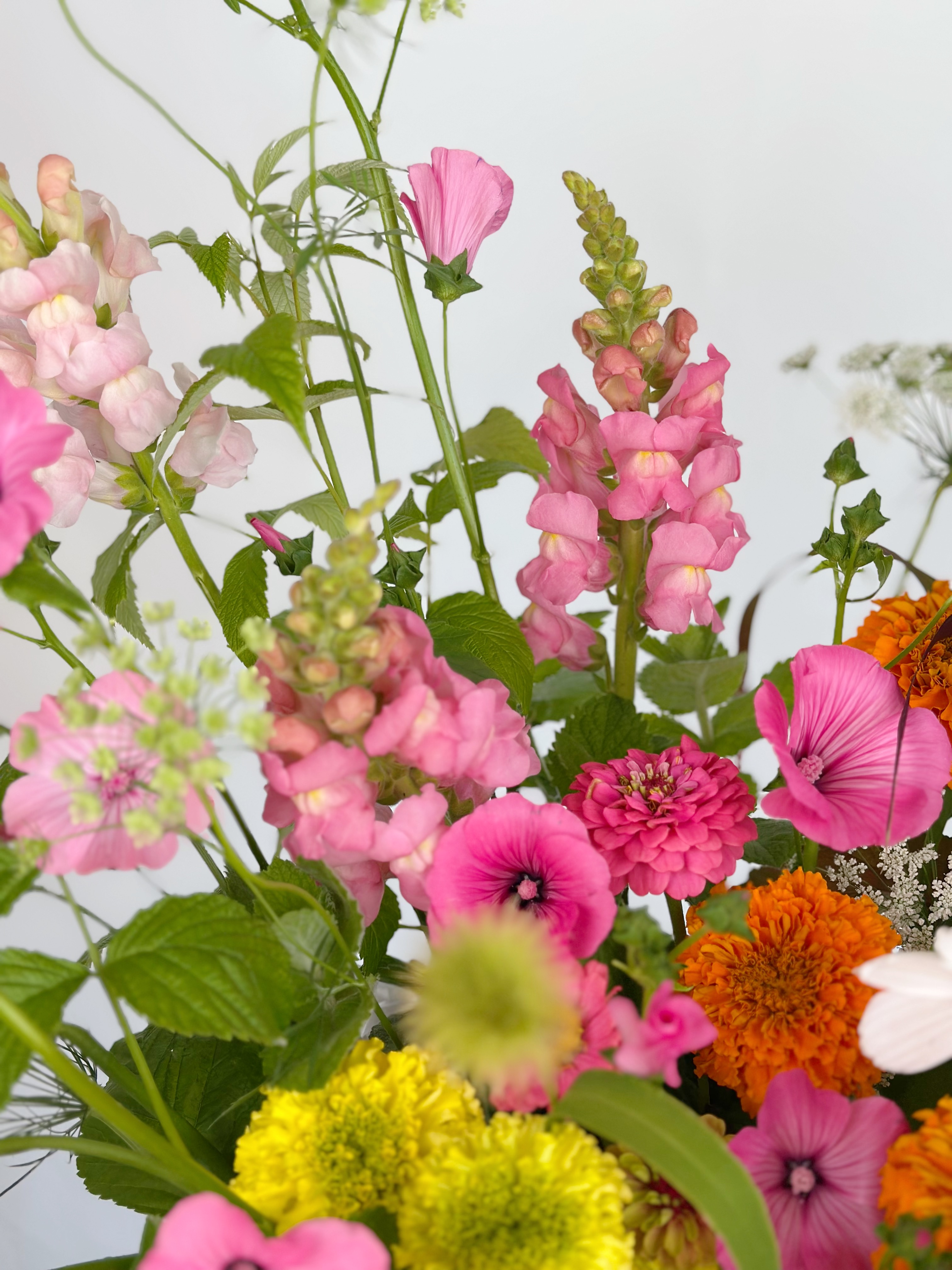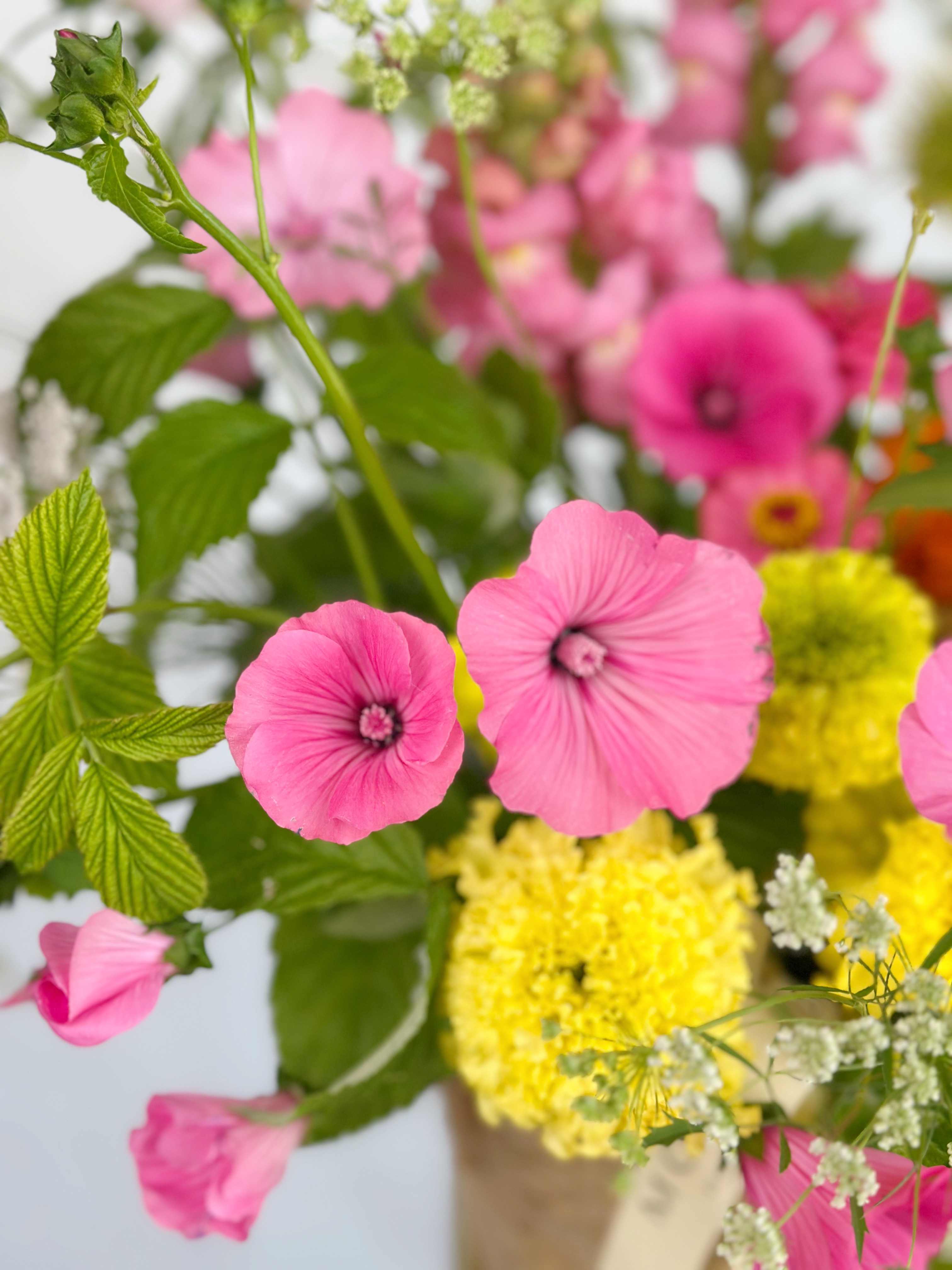 Представляем вам уникальную композицию из свежесрезанных фермерских цветов, собранных с любовью на наших полях. Плетёная корзина, наполненная яркими летними цветами, создаст атмосферу уюта в вашем доме.