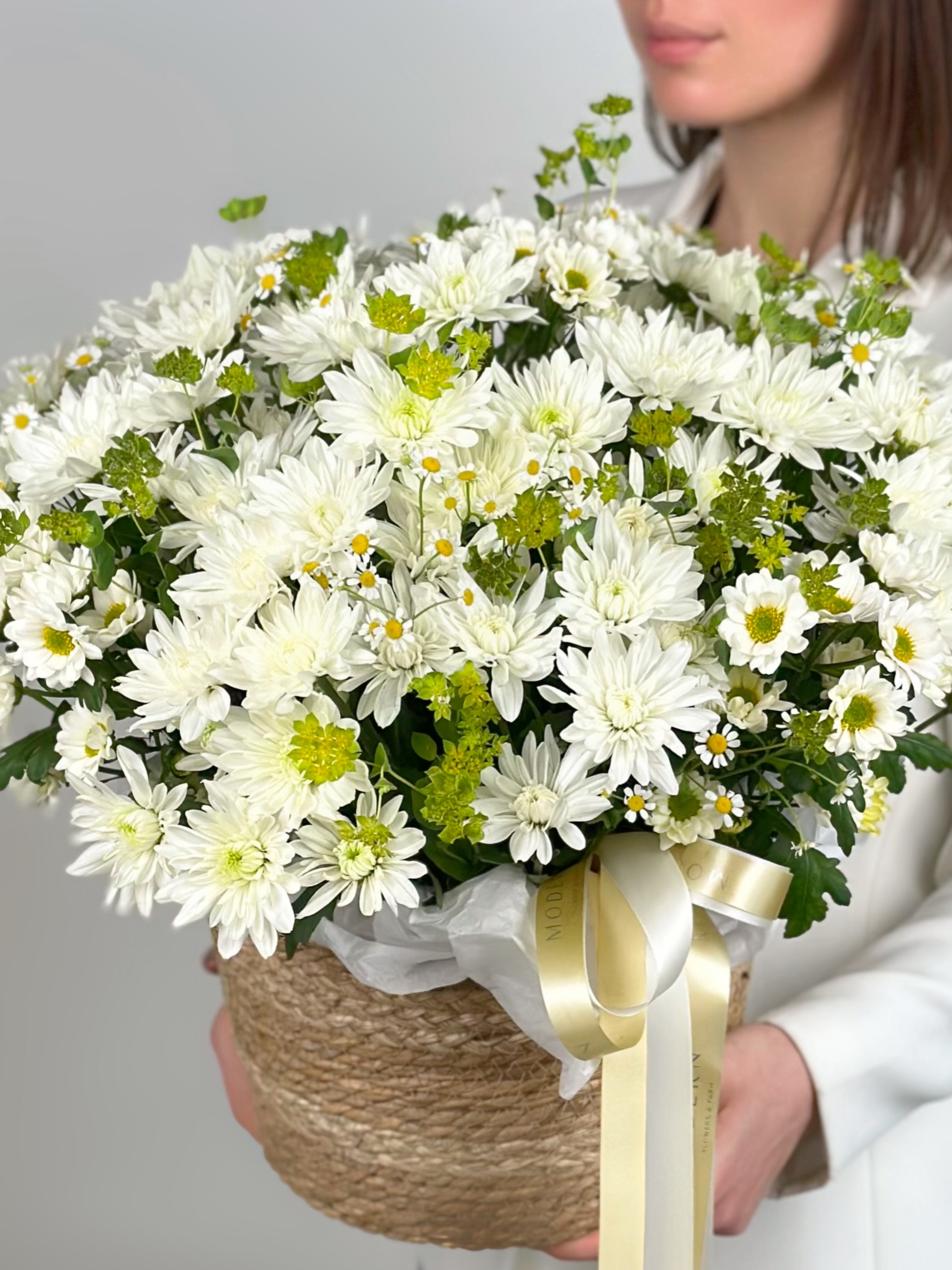 РОМАШКА, ХРИЗАНТЕМА В ПЛЕТЕНОЙ КОРЗИНЕ