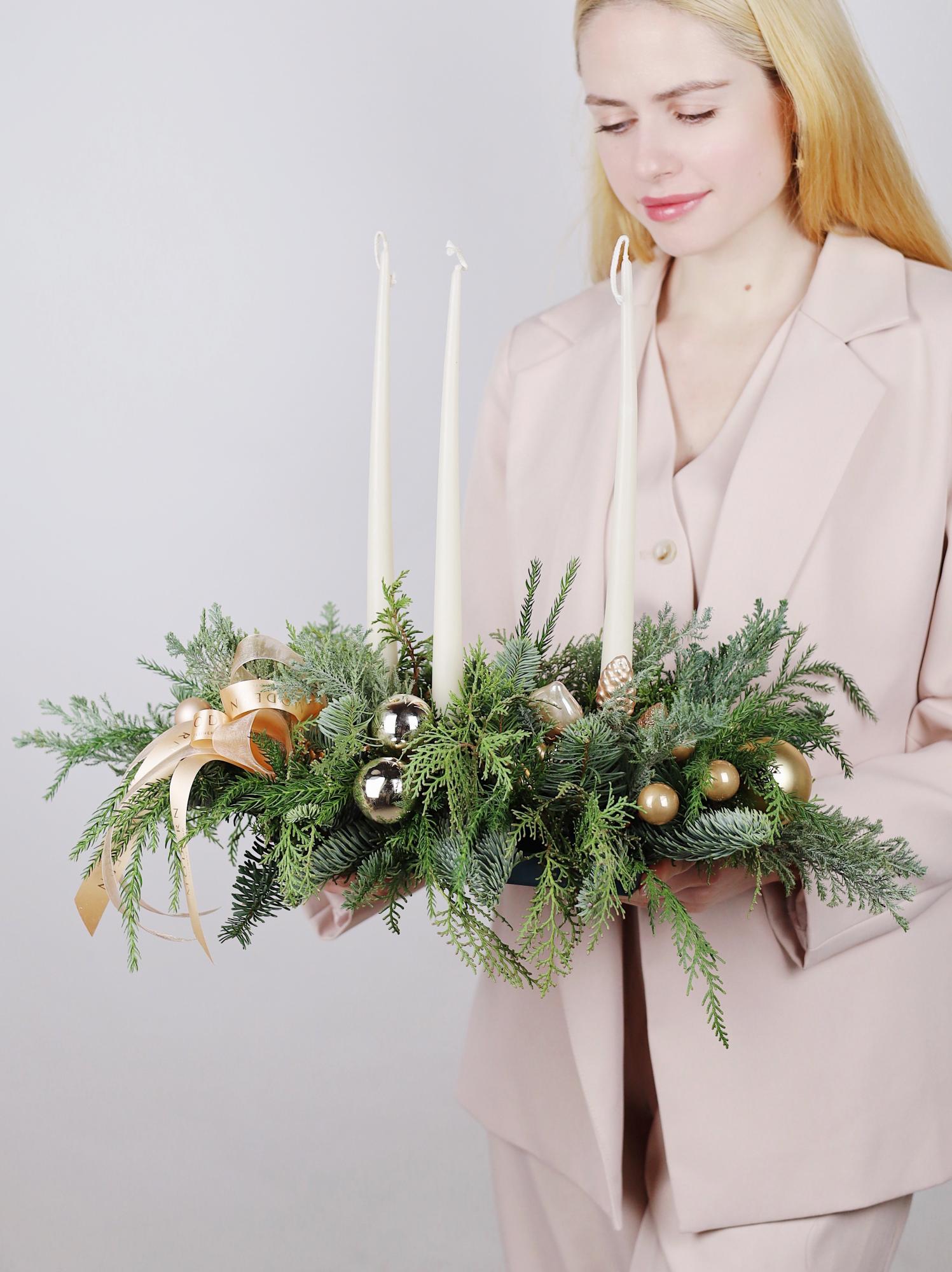 ТОРЖЕСТВЕННАЯ КОМПОЗИЦИЯ НА СТОЛ СО СВЕЧАМИ