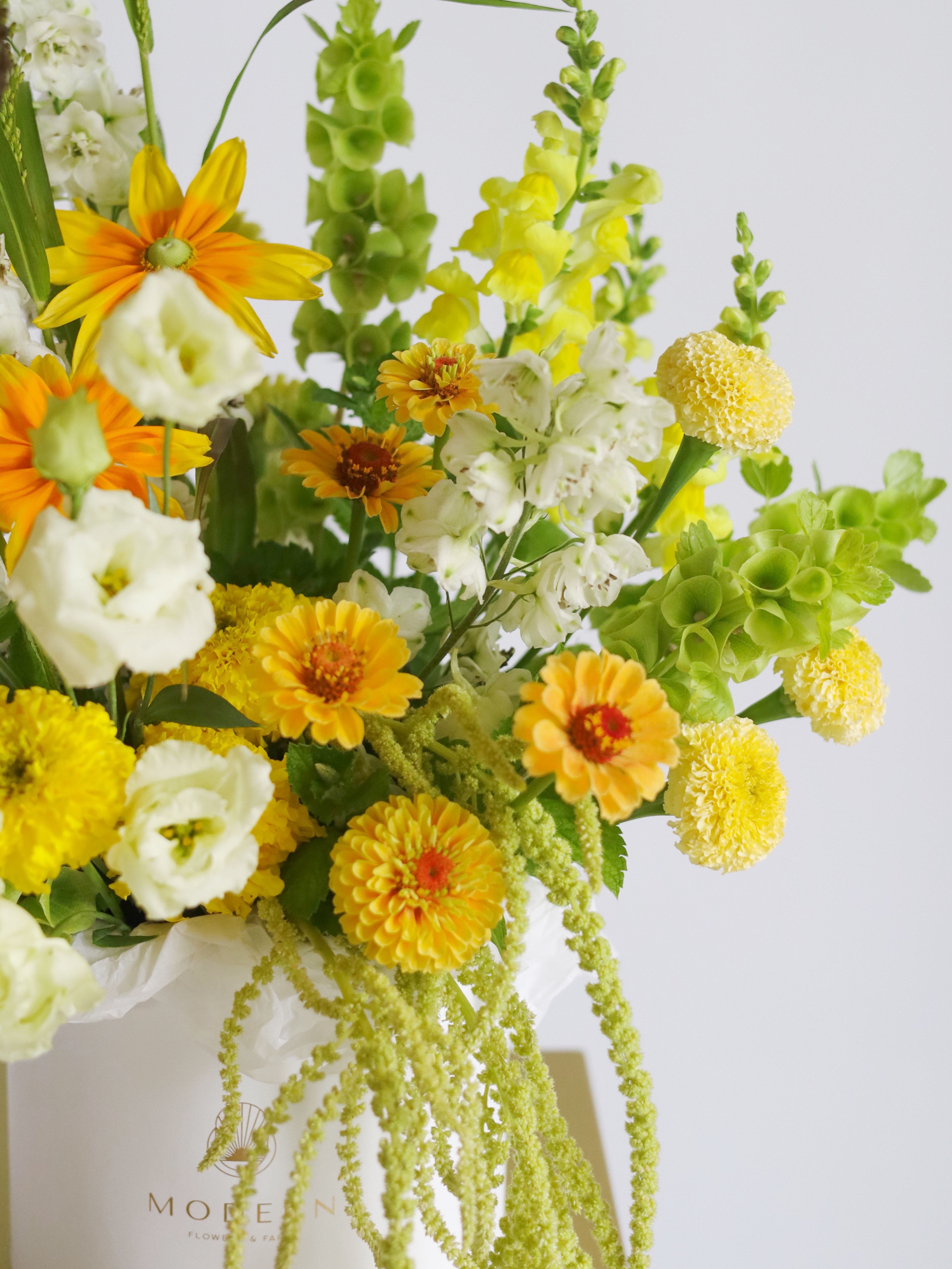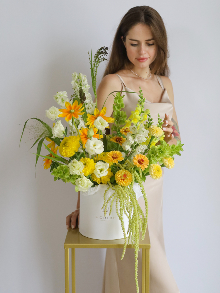 Представляем вашему вниманию великолепную композицию, созданную из свежесрезанных фермерских цветов, которые воплощают в себе всю красоту летнего сезона.