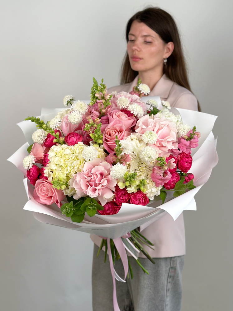 БОЛЬШОЙ ТОРЖЕСТВЕННЫЙ БУКЕТ С ПИОНОВИДНОЙ РОЗОЙ